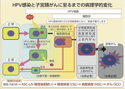 HPV感染と子宮頸がんに至るまでの病理学的変化